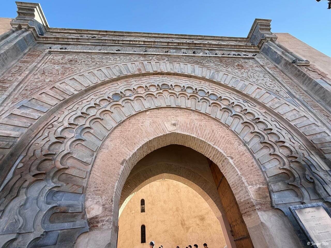 Marrakesh is historically known for having 19 major gates (or babs in Arabic) set into its 19 kilometres of fortified, red-mud ramparts. The Bab Agnaou gate was built in the late 12th century, being completed around 1188 or 1190 – making it over 800 years old! Constructed during the Almohad Dynasty by Caliph Abu Yusuf Ya’qub al-Mansur, this UNESCO-listed site served as the primary public entrance to the royal kasbah.