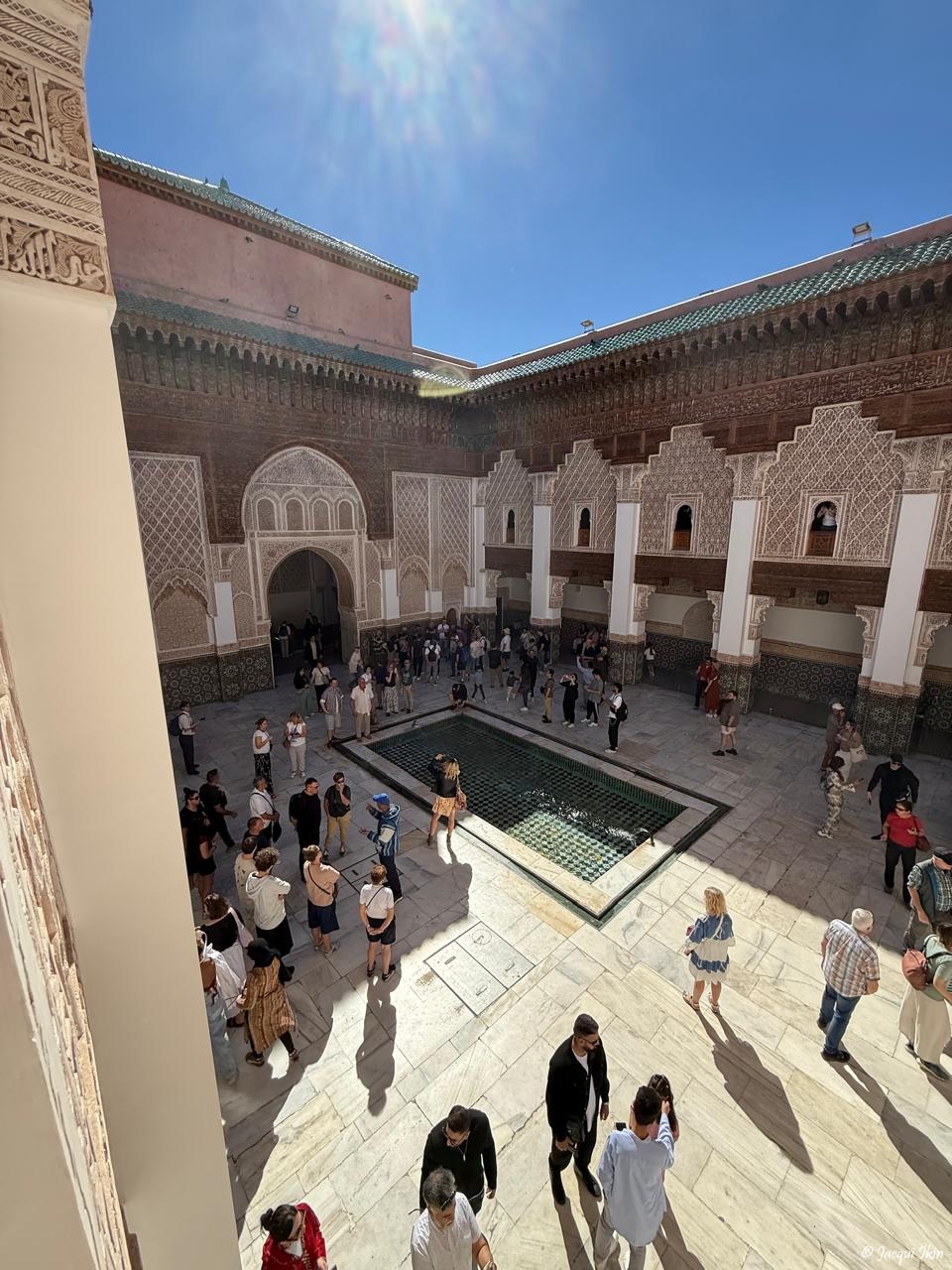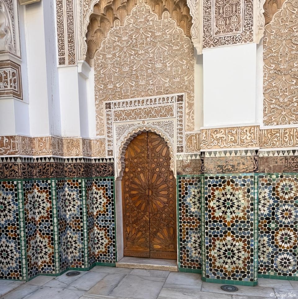 Around the courtyard, narrow stairways lead to rows of small student chambers—simple, almost austere spaces where scholars once lived and studied, their lives devoted to learning and contemplation. For nearly four centuries this building thrived as a centre of intellectual and spiritual life before closing in 1960. Carefully restored, it now stands not only as a masterpiece of Moroccan architecture but also as a poignant reminder of Marrakesh’s rich scholarly heritage.