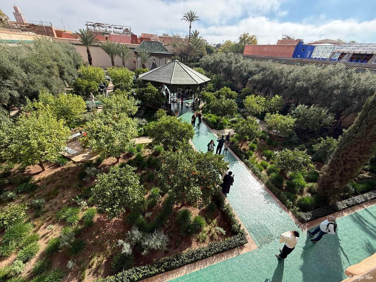 Central to the gardens is an ancient khettara, an underground irrigation system first introduced to Marrakesh by the Almoravids in the 11th century to supply water to the city’s mosques, hammams, and fountains. Rediscovered during the site’s restoration, the system now functions as a living demonstration of the ingenious water engineering that once sustained the desert city.