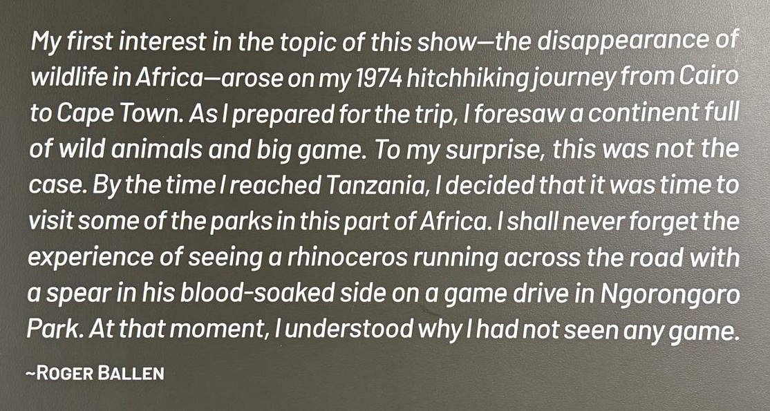 Let me say this – the exhibition is definitely not (in my humble opinion) for children. Or those easily disturbed or prone to nightmares. It is my interest in Africa and Safaris and Conservation that prompted me to visit – and I don’t regret one moment of it. It is something that will be etched in my memory a long time to come. And the message? Even that is uncertain. I felt as though this exhibition was brewing in the artists mind for decades – and finally found it’s way out. Without a specific “purpose”, without a pre-determined agenda, and without censure. A simple “art for art’s sake”, “it is what it is” – yet multi-layered and complex in the extreme. The result is profound… An immersive installation that combines photography, installation, archival footage, and found objects unlike any other – ever! When I asked Roger if he was comfortable with me photographing, his response was “Go right ahead” – in and of itself unusual. Even this was refreshing – many are reluctant for people to take images of their art. He has published over 25 books internationally and exhibited across the world – yet seems to be an altogether humble man.