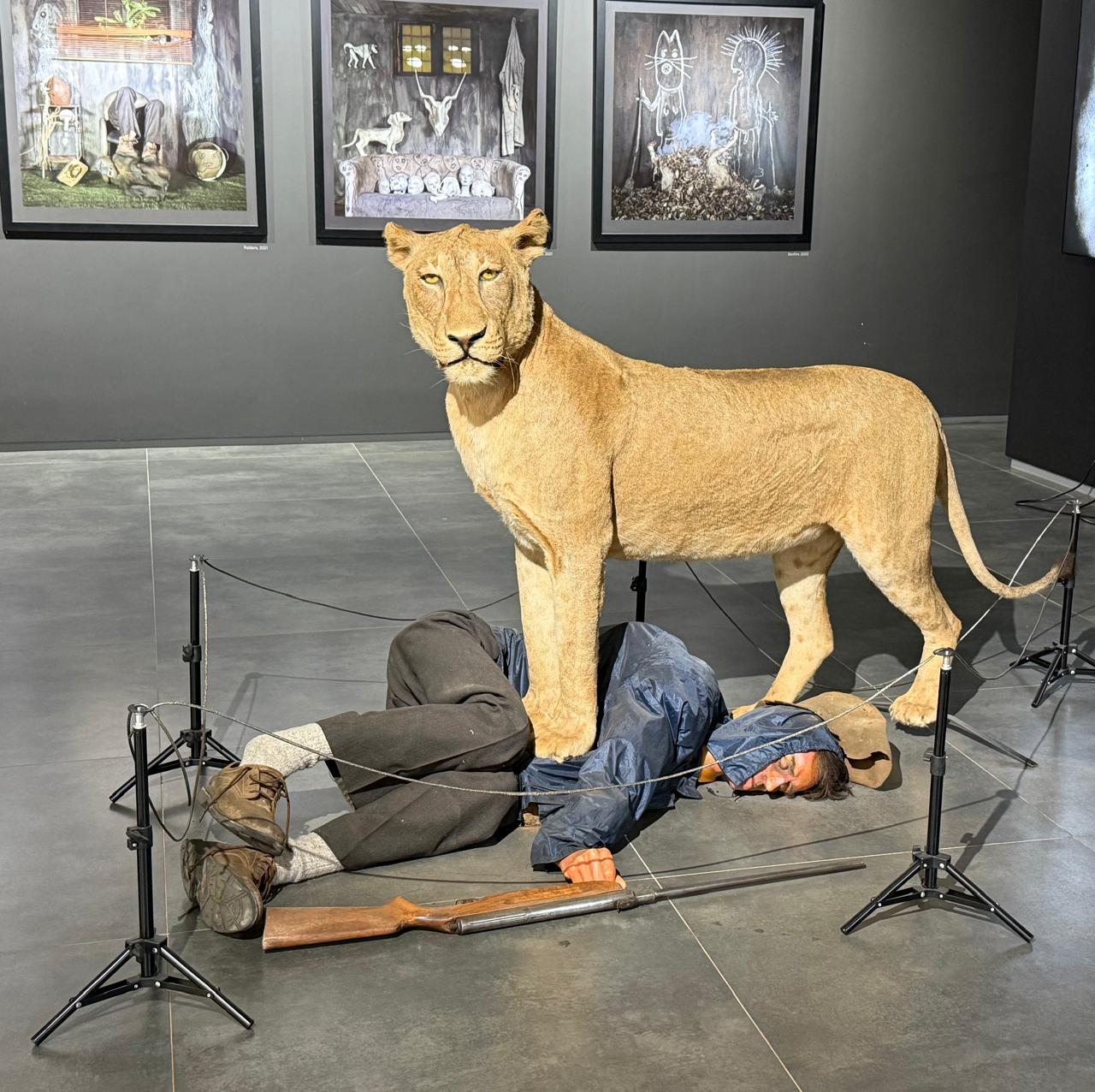 Initially he documented life in South African townships and the marginalized communities on the outskirts of society. His work slowly evolved from documentary photography to a highly staged and symbolic style. He often used stark black-and-white photography, creating images that are simultaneously real and surreal. His photographs frequently feature ordinary people in unusual, sometimes disturbing, settings, exploring themes of isolation, fear, and the darker aspects of human nature. With this change in direction, one can almost see the foreshadowing of this current exhibition – which is primarily non-photographic. In a strange twist, it occurs to me that “End of the Game” is perhaps even more photographic, as the subject matter begs to be photographed – and the end result is innumerable images going out into the world.
