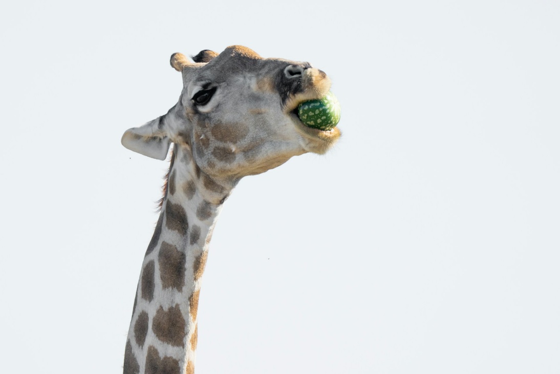 Which is completely appropriate! Do you know why? Bright, refreshing, and festive, the watermelon originated in Africa. I was both surprised and delighted to discover this. “Watermelon’s history dates back 5000 years to southern Africa where the tough, drought-tolerant ancestor of watermelon thrived. Although we don’t know the exact identity of this plant, we do know it was prized for its ability to store water and was used by indigenous people in the Kalahari Desert region” (see article detailed in info block). Perhaps an older version of the Tsamma melon – being enjoyed even today by the giraffe above?