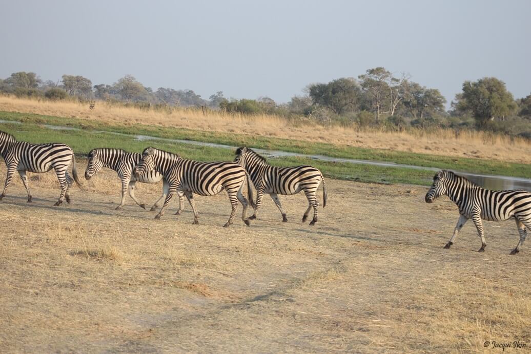 Zebra along the green belt created by the Khwai river. Many are heavily pregnant at this time of the year…