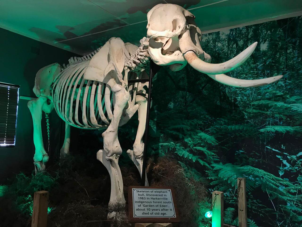 The Forest Legends Museum at Diepwalle (Deepwalls) is dedicated to those elephants, and also to the woodcutters of the 19th and early 20th Centuries who harvested the indigenous forests. It’s a lovely little museum – definitely worth a visit. It has three rooms. One depicts the lifestyle of the woodcutters. The second is all about the Knysna elephants – complete with a mounted skeleton of a male elephant that was discovered near the Garden of Eden in 1983. They say that it had died about ten years before it was found – some of you may remember seeing it standing in the window of Knysna Tourism, at 40 Main Street, in the late 1980s. The last room houses a collection of photographs and books about the plants and wildlife of the forests.