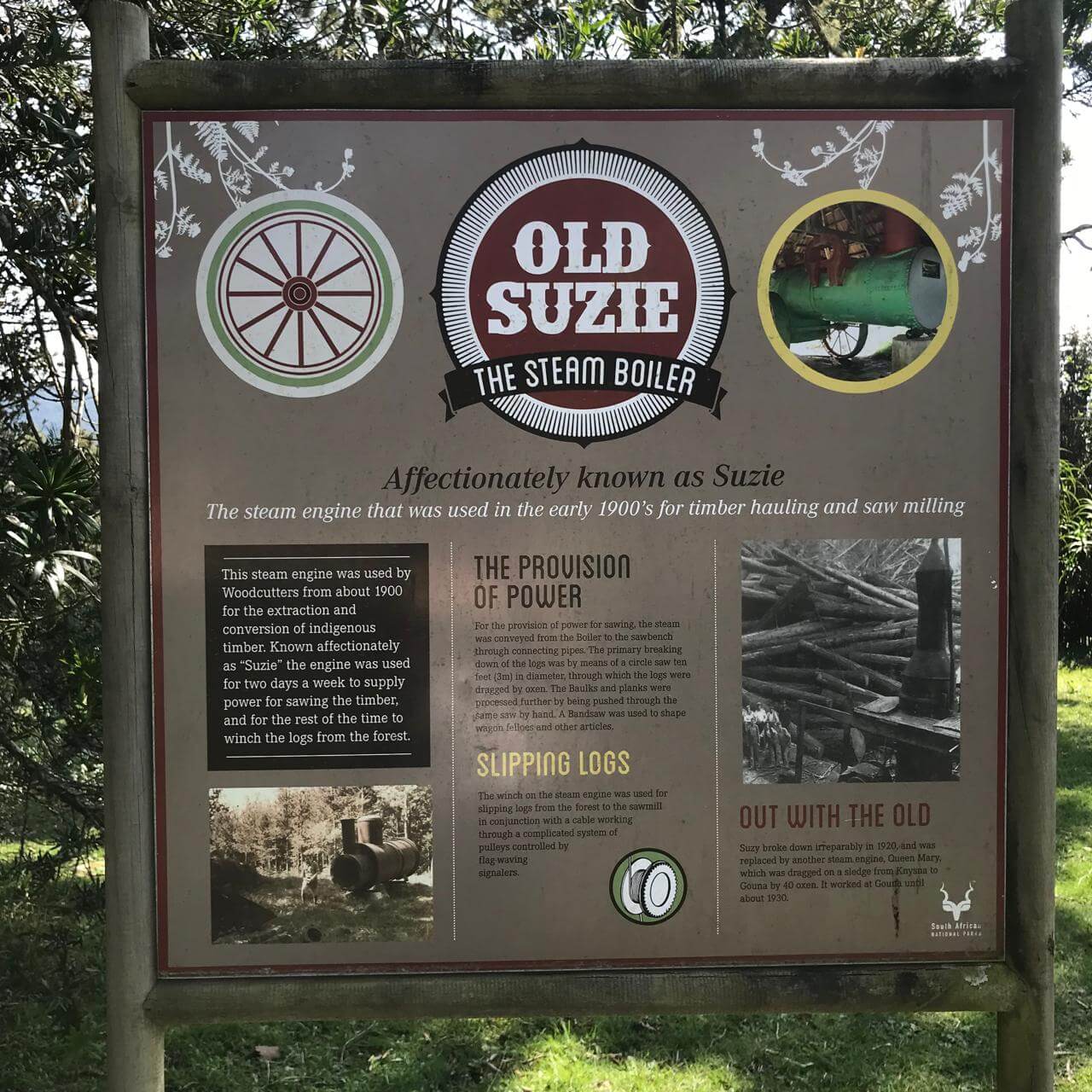 Trains seem to take on a life of their own – particularly after their retirement. The train that belongs to this beautiful part of the world is known as “Suzie”. This little steam engine was used in the early 1900s for timber hauling and saw milling. Two days a week, the engine was used to provide power for sawing the timber. The rest of the week it was her job to winch logs from the forest. Suzie eventually broke down irreparably in 1920.