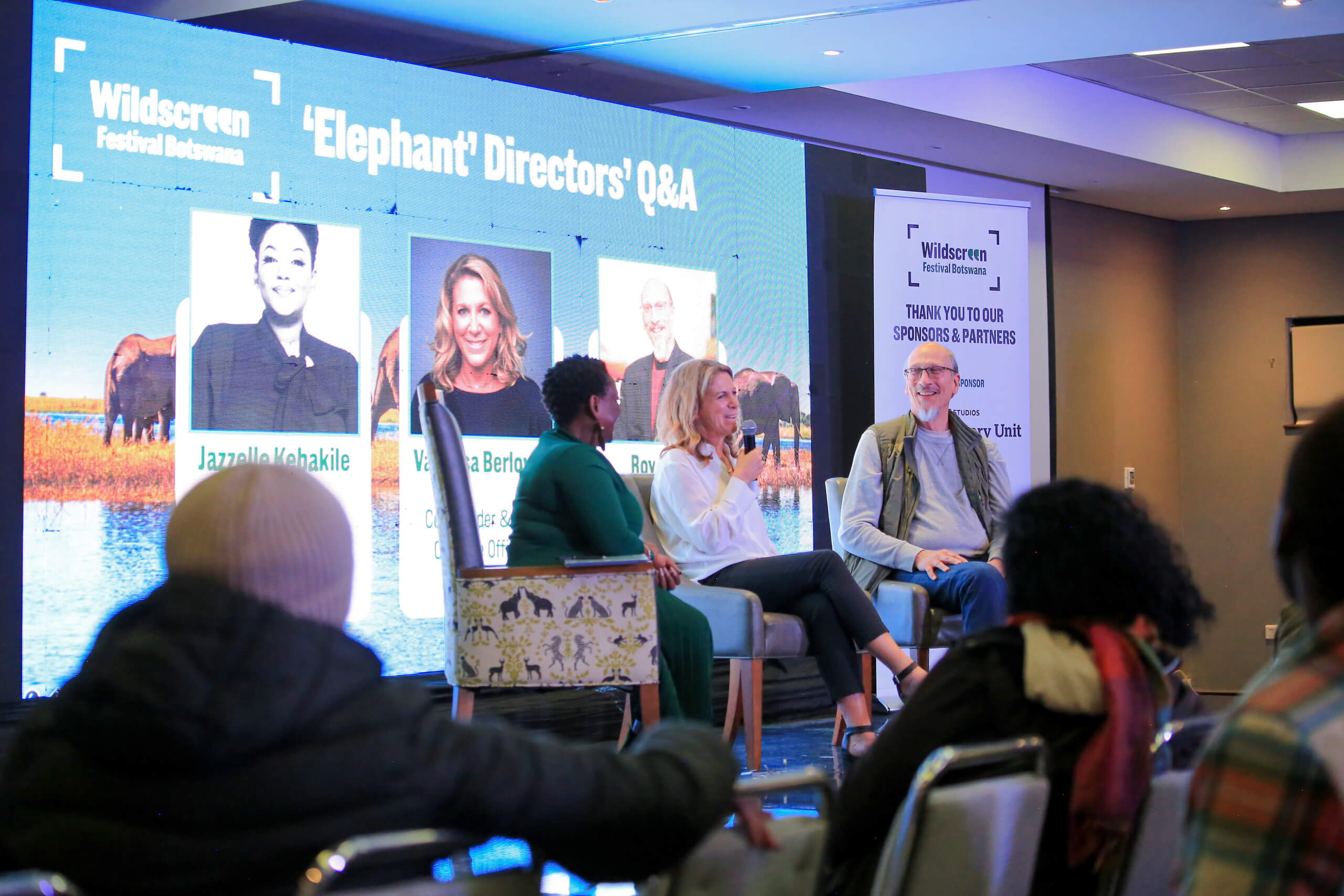 Filmed in Botswana over three years, “Elephant” follows Shani and her spirited son Jomo as their herd travels through the Kalahari Desert on the world’s longest elephant migration. Led by Gaia, the matriarch, they encounter lions, crocodiles and brutal heat on their epic journey through the Okavango Delta and across the Zambezi River. The film, originally narrated by Megan Markle, has been translated into Setswana, with voice over performed by Botswana radio personality, Jazzelle Kebakile. The screening was followed by a Q&A with Roy Conli from Disney Studios and Vanessa Berlowitz from Wildstar Films, moderated by Jazzelle Kebakile.