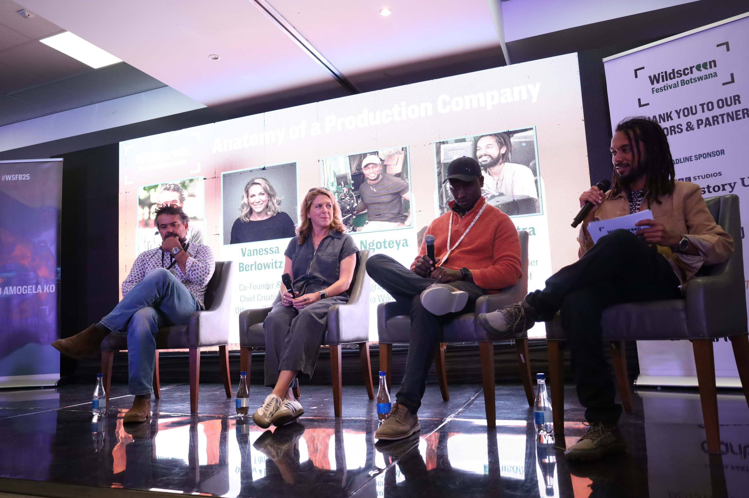 Never before, in the history of Botswana’s wildlife film and television industry, have so many internationally renowned legends gathered in one place. The atmosphere was positively electric. Wildscreen presented an unparalleled opportunity for local creatives to connect, collaborate, and network with key figures in the global wildlife filmmaking industry. Some of the prominent personalities included Jonny Keeling (Head of the globally renowned BBC Natural History Unit, Jonny has produced and directed some of the Unit’s most successful content, including BAFTA and Emmy award winning series like Seven Worlds, One Planet, Planet Earth and Planet Earth II) and Sreya Biswas (BBC Natural History Unit’s Director of Programmes, a newly created position responsible for ensuring the continued delivery of an outstanding slate of commissioned titles, while also developing an ambitious portfolio of innovative new programmes for multiple global clients across a range of platforms). Caroline Cox (a Production Executive at the BBC Studios Natural History Unit, who is known for Seven Worlds One Planet and Dynasties II) joined them.